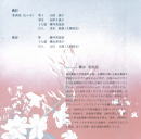 牧野由多可 作曲(Tr1) 1964年「邦楽4人の会」の委託による作曲である。「まつりか」とも読み、これが和名となっているインド原産の花をイメージして作曲された。日本に飛来したこの花の芳香や、高杯形の花が白く咲く美しさと魅力を邦楽器の響きとしてとらえたと作曲者は述べている。 十七絃独奏に始まる旋律が全体を支配するテーマとなっているが、次第に変奏されて、最後に冒頭のテーマが繰り返される。 |